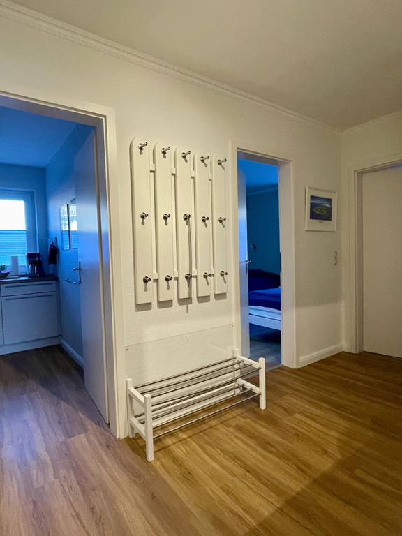 Die großzügige und gemütliche Wohnung mit einer Größe von 72 m² liegt im Erdgeschoss und bietet ausreichend Platz für bis zu 4 Personen. Sie verfügt über zwei Schlafzimmer, ein Wohnzimmer, Küche, Flur, Bad und eine große, teilweise überdachte Südterrasse.